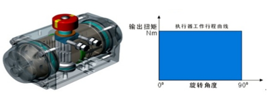 2、緊湊的雙活塞齒輪、齒條式結(jié)構(gòu),嚙合精確,傳動(dòng)平穩(wěn),安裝位置對(duì)稱,輸出扭矩恒定。